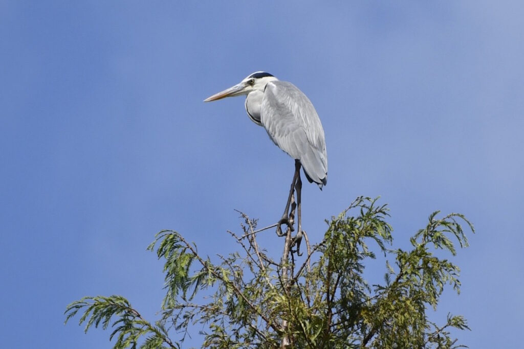 はるか遠くの田んぼのあぜ道にコウノトリではないかと近づけば、何とアオサギが羽繕いの最中でした。