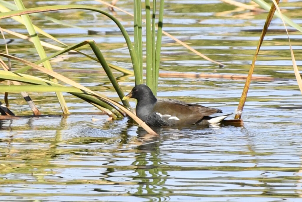 ムクドリが鉄柱で羽を休めている姿が何か他の鳥に見えて暫く探鳥。川にはオオバンが気持ちよく泳いでいました。