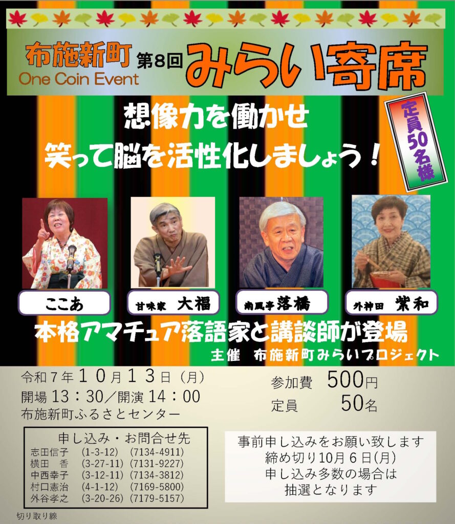 布施新町在住のアマチュア落語家とその仲間たちが発表する『みらい寄席』です
